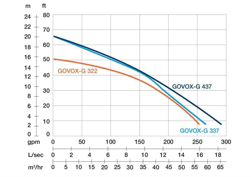 ● Serijo GOVOX odlikuje vrtinčni rotor skupaj s širokim ohišjem črpalke. Vrtenje rotorja povzroči vrtinčenje, centrifugalno delovanje med rotorjem in ohišjem črpalke. To delovanje omogoča črpanje velikih in vlaknastih snovi brez zamašitve, kar vodi do manjše obrabe rotorja in daljše življenjske dobe črpalke.